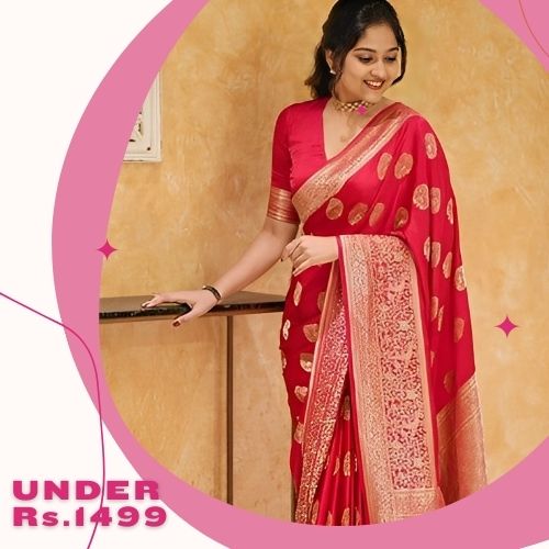 Outstanding Red Pashmina Saree With Majesty Blouse Piece