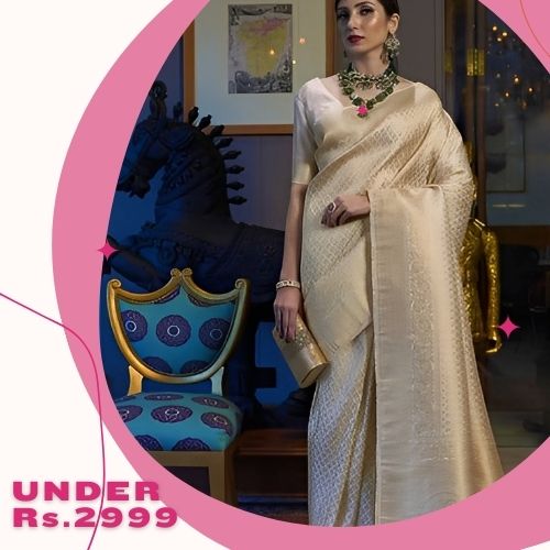 Embrocation White Dola Silk Saree With Murmurous Blouse Piece