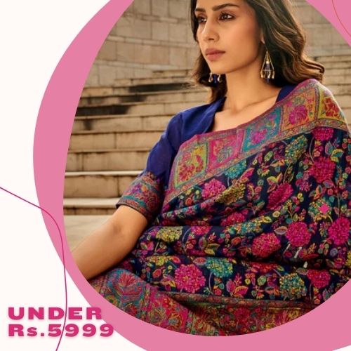 Magnificat Black Pashmina Saree With Comely Blouse Piece