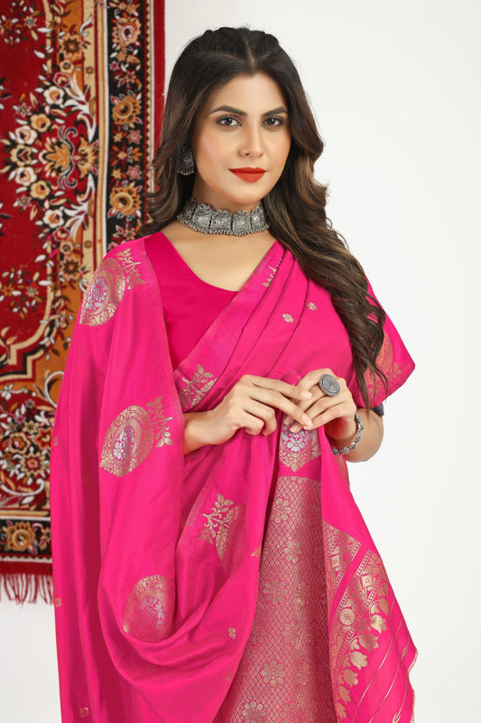 Wonderful Dark Pink Soft Banarasi Silk Saree With Lissome Blouse Piece