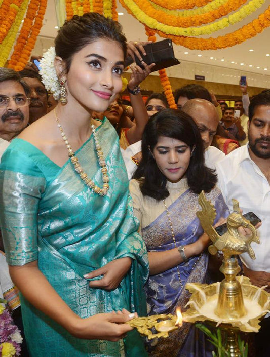 Blissful Turquoise Soft Silk Saree with Ethnic Blouse Piece