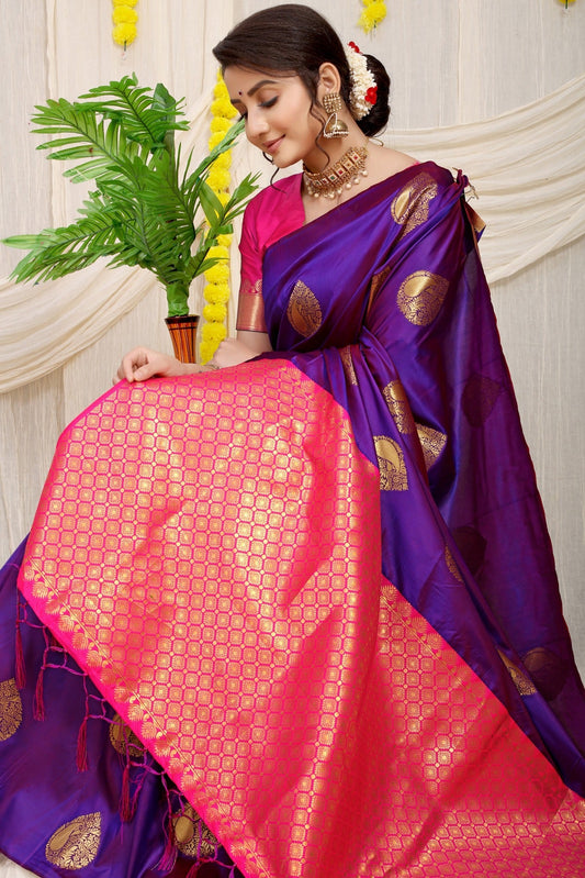 Charming Purple Banarasi Silk Saree With Engrossing Blouse Piece