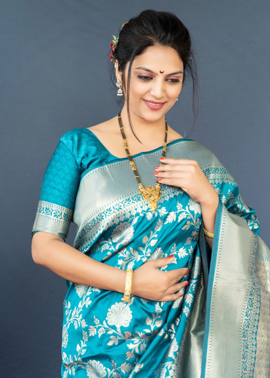 Magnificat Firozi Banarasi Silk Saree With Lissome Blouse Piece
