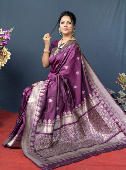 Outstanding Purple Banarasi Silk Saree With Classic Blouse Piece