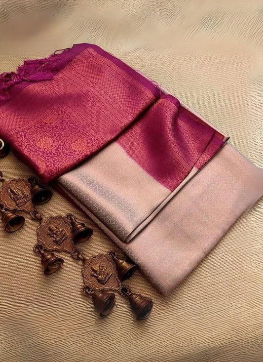 Beautiful Lavender Soft Tissue Silk Saree With Radiant Blouse Piece
