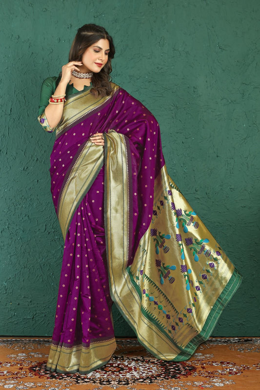 Ideal Purple Paithani Silk Saree With Angelic Blouse Piece