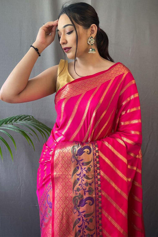 Murmurous Dark Pink Paithani Silk Saree With Cynosure Blouse Piece