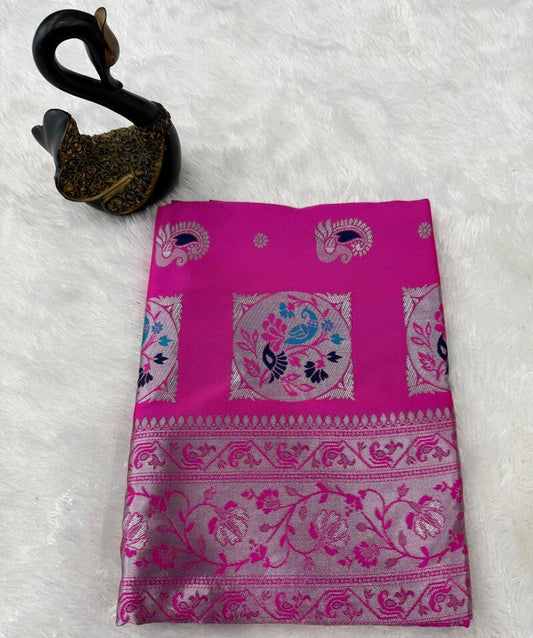 Surreptitious Dark Pink Paithani Silk Saree With Whimsical Blouse Piece