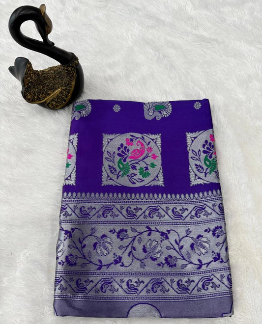 Lustrous Purple Paithani Silk Saree With Ebullience Blouse Piece