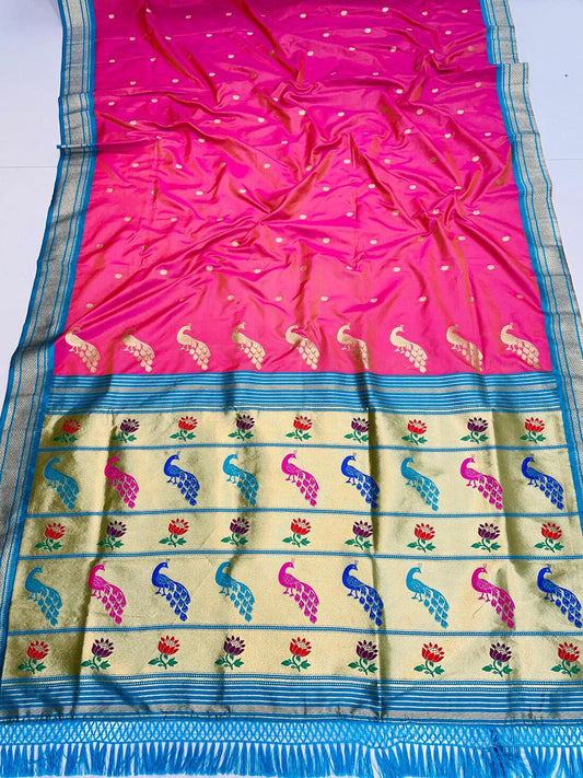 Vivacious Pink Paithani Silk Saree With Groovy Blouse Piece