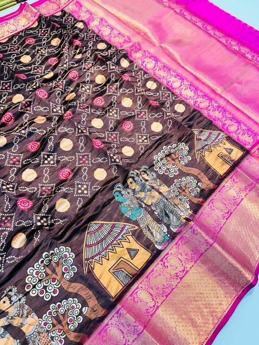 Mesmeric Mehndi Kalamkari Printed Saree With Surpassing Blouse Piece