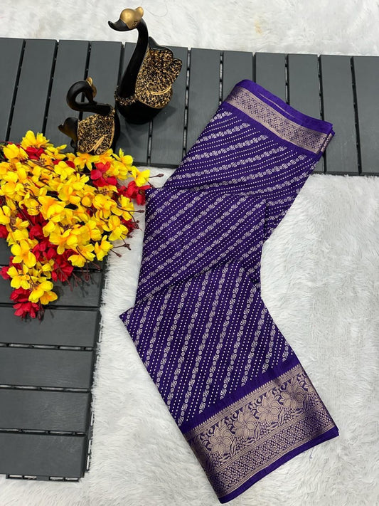 Felicitous Purple Digital Printed Dola Silk Saree With Tempting Blouse Piece