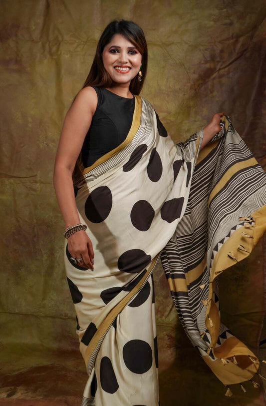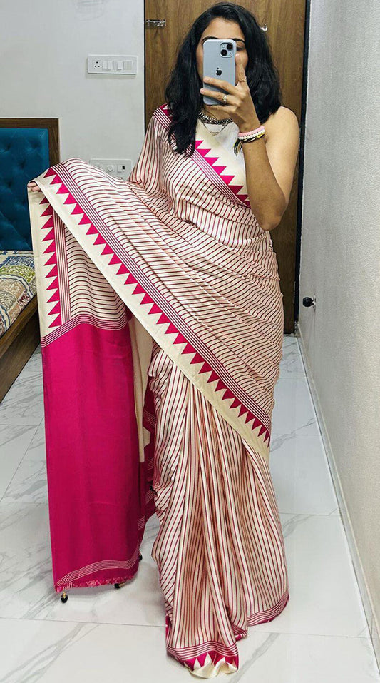 Imbrication Beige Digital Printed Crape Silk Saree With Posh Blouse Piece