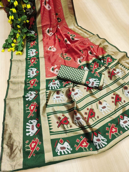 Prodigal Red Soft Silk Saree With Ornate Blouse Piece