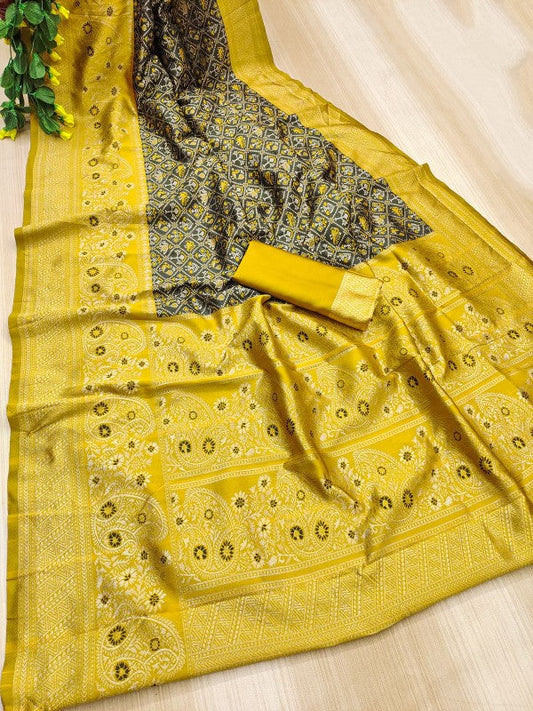 Profuse Golden Soft Banarasi Silk Saree With Winsome Blouse Piece