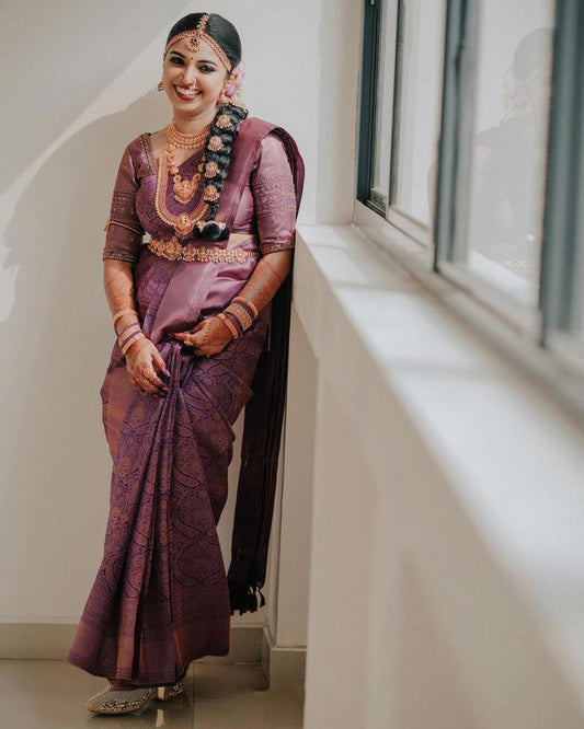 Charming Purple Soft Banarasi Silk Saree With Attractive Blouse Piece