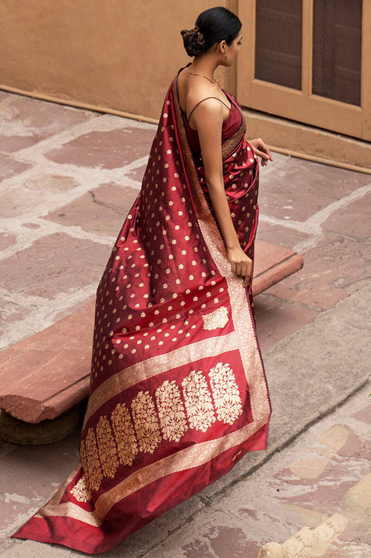 Piquant Wine Soft Silk Saree With Tantalizing Blouse Piece