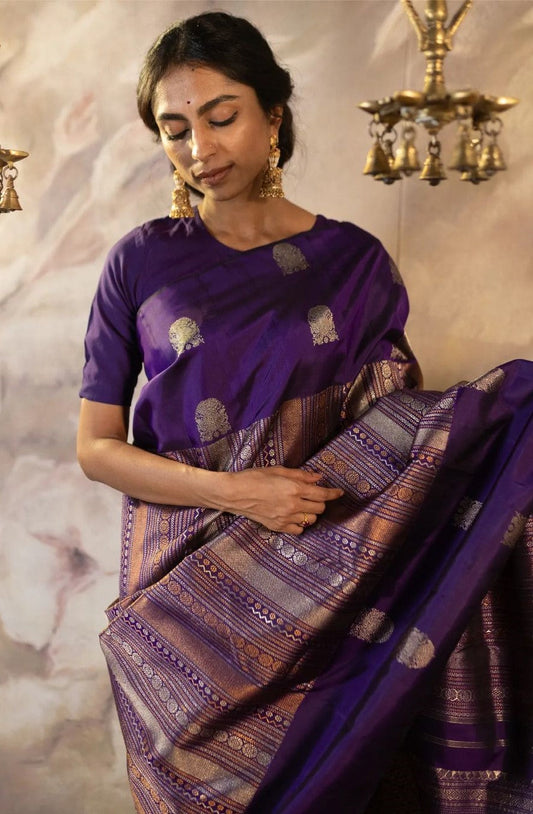 Phenomenal Purple Soft Silk Saree With Engrossing Blouse Piece