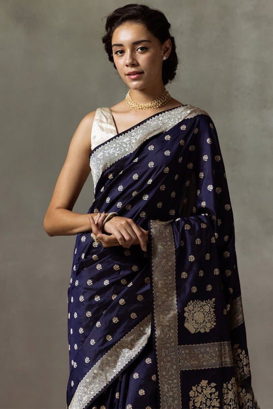 Lissome Navy Blue Soft Silk Saree With Engaging Blouse Piece