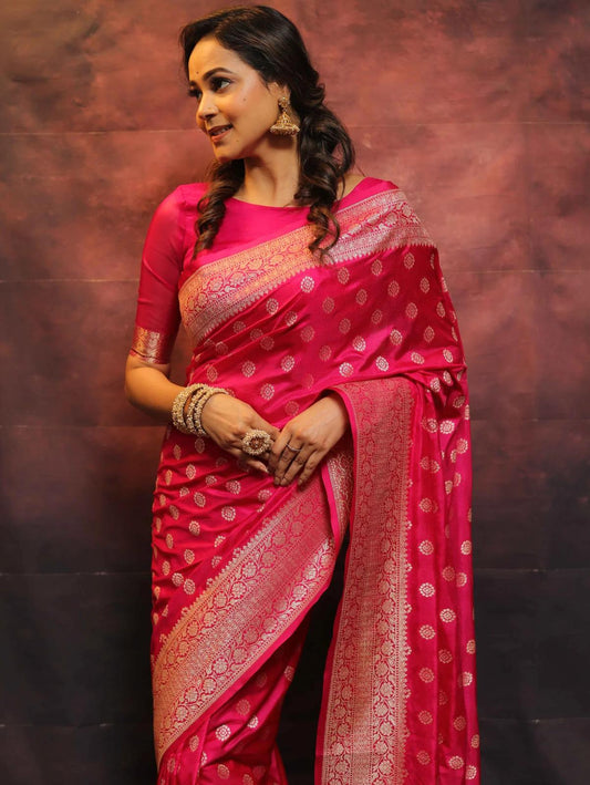 Lassitude Dark Pink Soft Silk Saree With Scintilla Blouse Piece