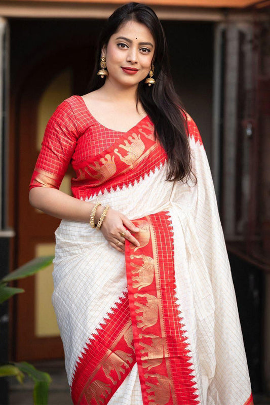 Desiring Off White Cotton Silk Saree With Capricious Blouse Piece