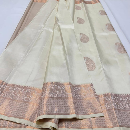 Flaunt Off White Soft Silk Saree With Sumptuous Blouse Piece