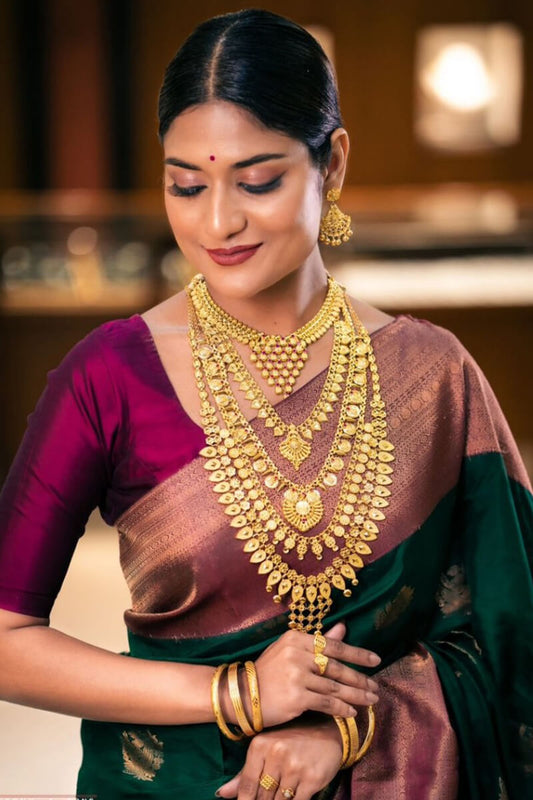 Forbearance Dark Green Soft Silk Saree With Imaginative Blouse Piece