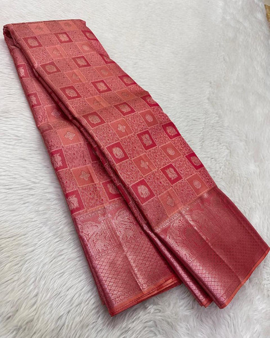 Girlish Dark Pink Kanjivaram Silk Saree With Intricate Blouse Piece