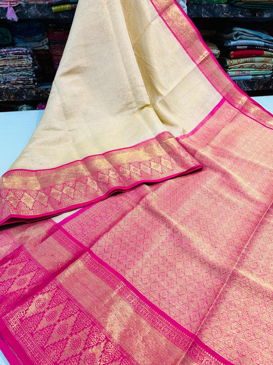 Jazzy Beige Soft Tissue Silk Saree With Blissful Blouse Piece