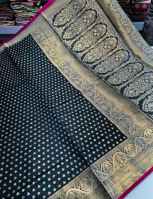 Redolent Black Soft Banarasi Silk Saree With Susurrous Blouse