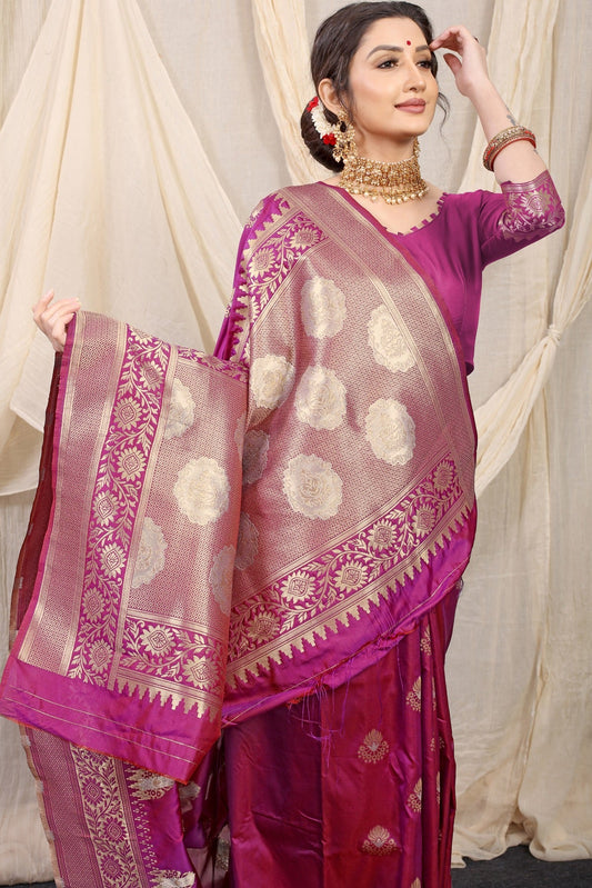 Gossamer Wine Kanjivaram Silk With Super extravagant Blouse Piece