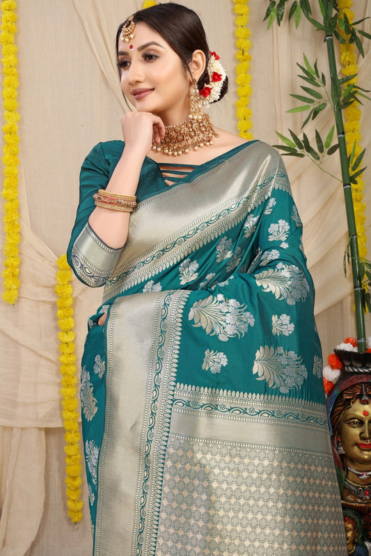 Nemesis Turquoise Kanjivaram Silk With Sizzling Blouse Piece