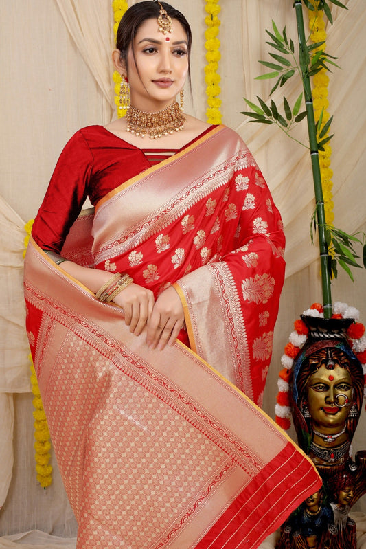 Scintilla Red Kanjivaram Silk With Demure Blouse Piece