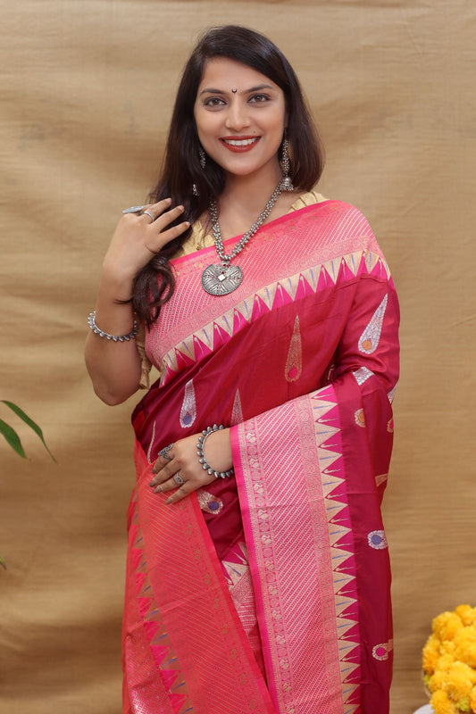 Enchanting Dark Pink Paithani Silk Saree With Flaunt Blouse Piece