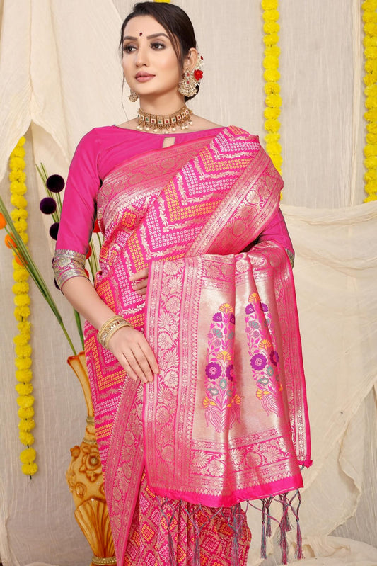 Alluring Dark Pink Soft Banarasi Silk Saree With Eye-catching Blouse Piece