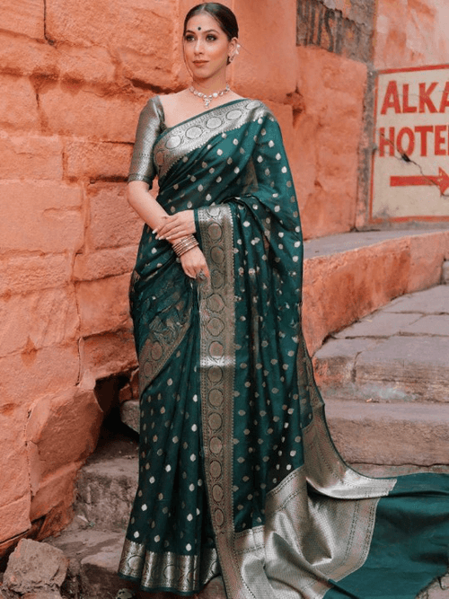 Assemblage Green Soft Silk Saree With Gossamer Blouse Piece