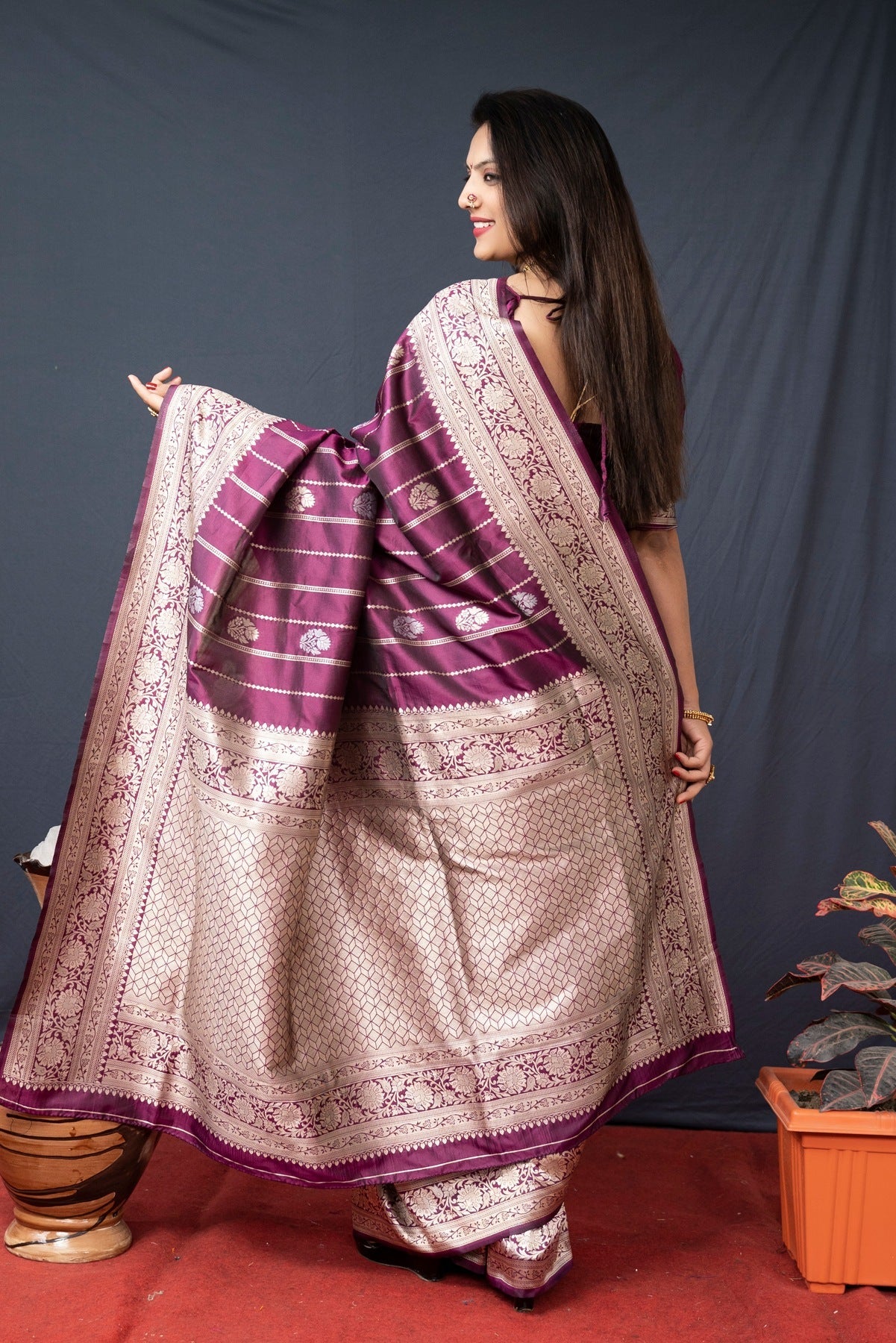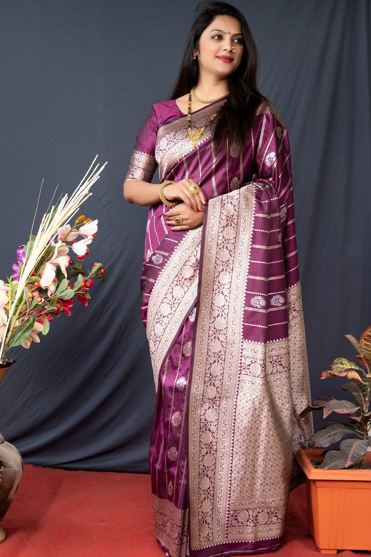 Attractive Purple Banarasi Silk Saree With Pretty Blouse Piece