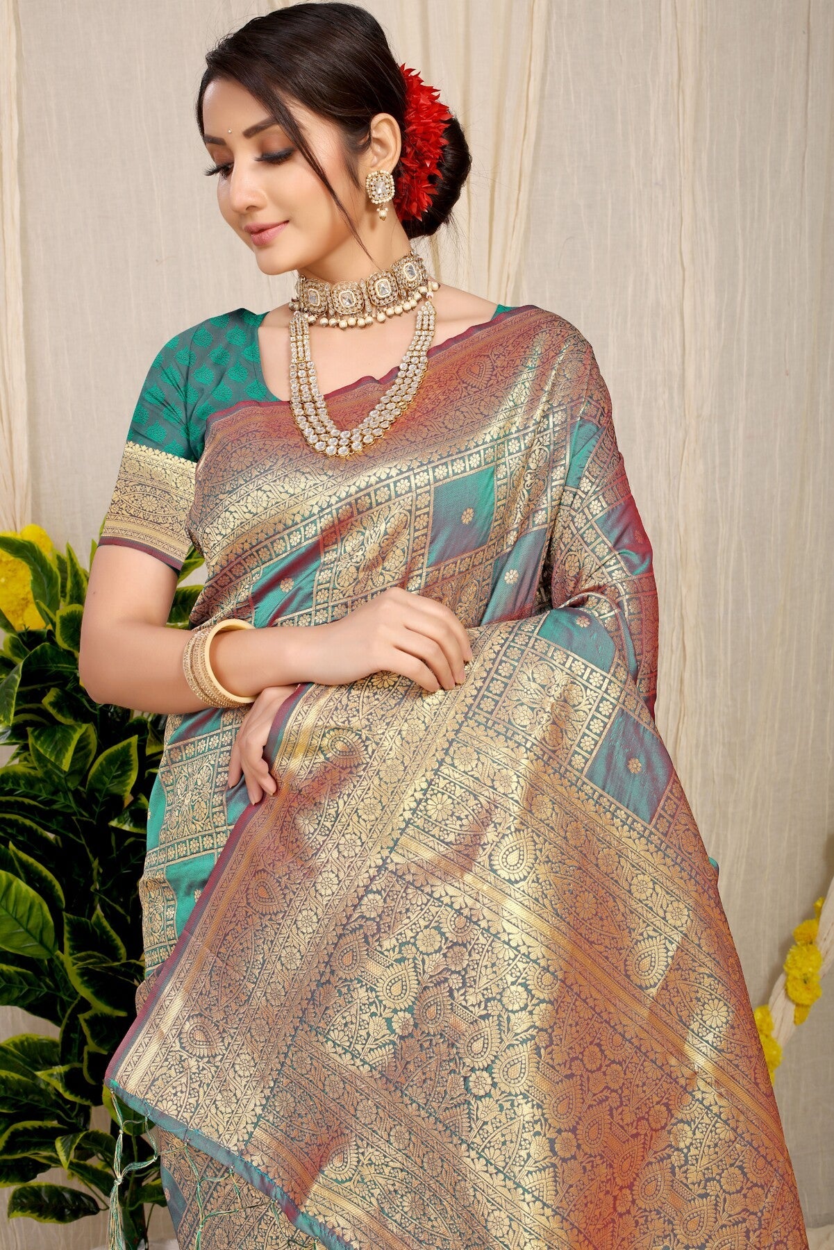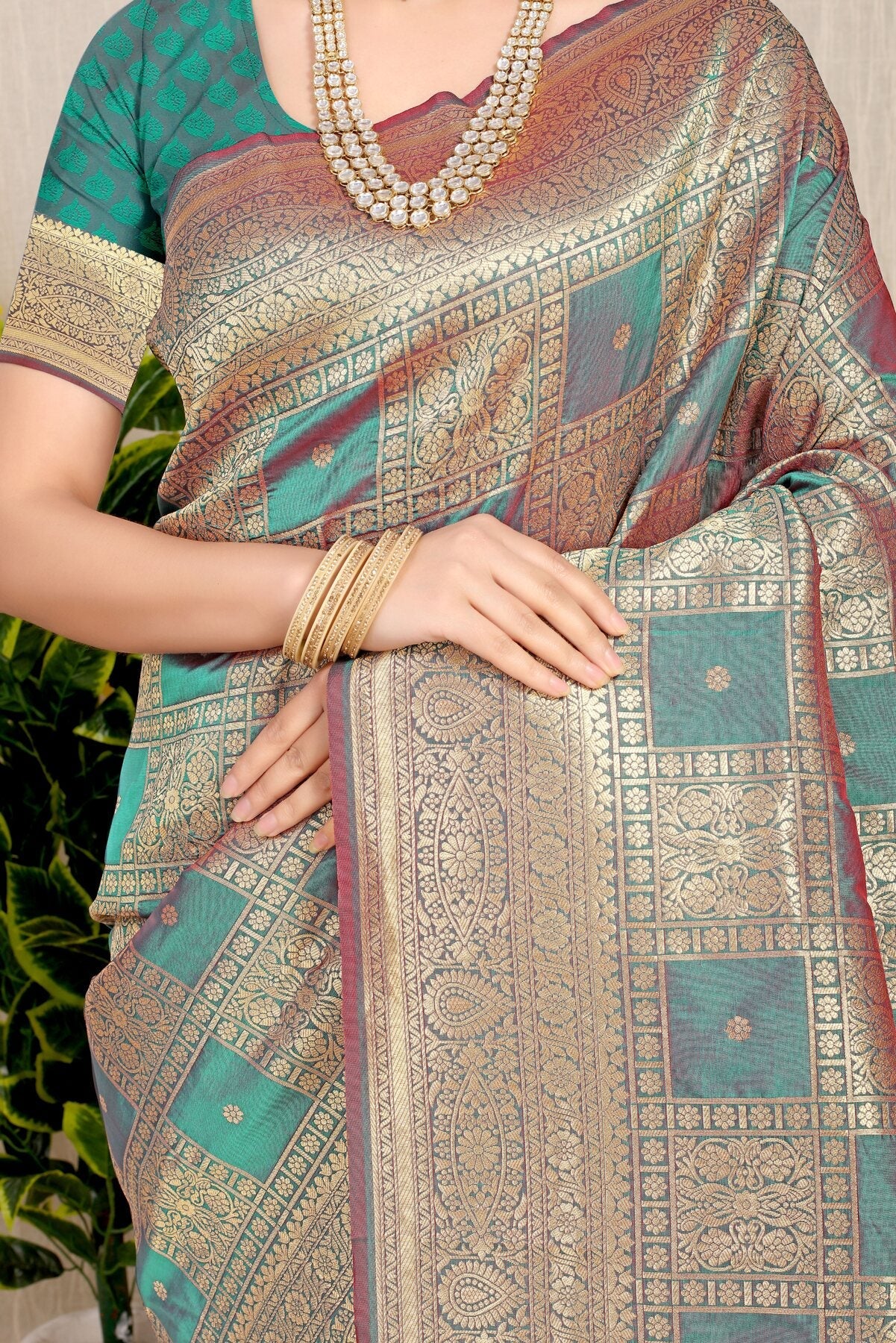 Capricious Grey Kanjivaram Silk Saree With Glittering Blouse Piece