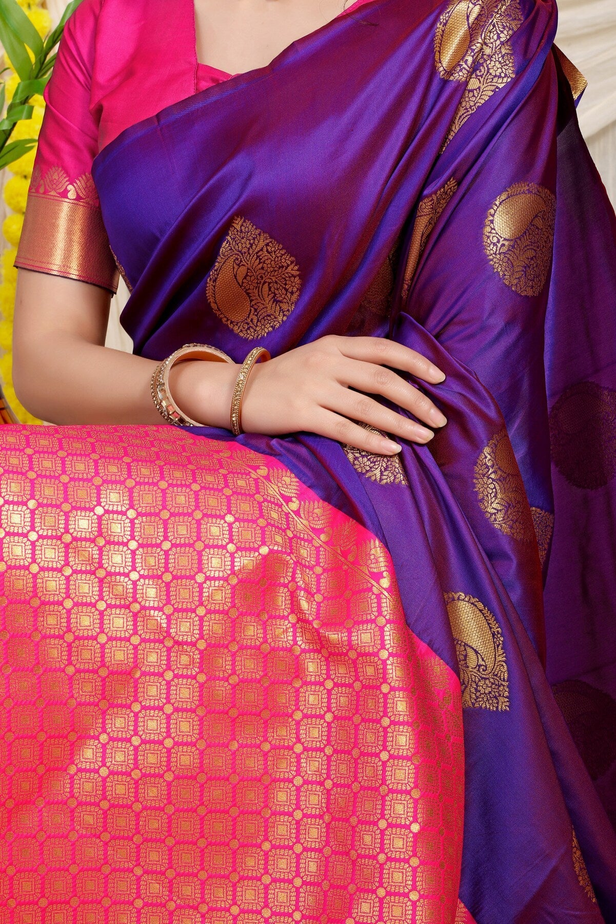 Charming Purple Banarasi Silk Saree With Engrossing Blouse Piece