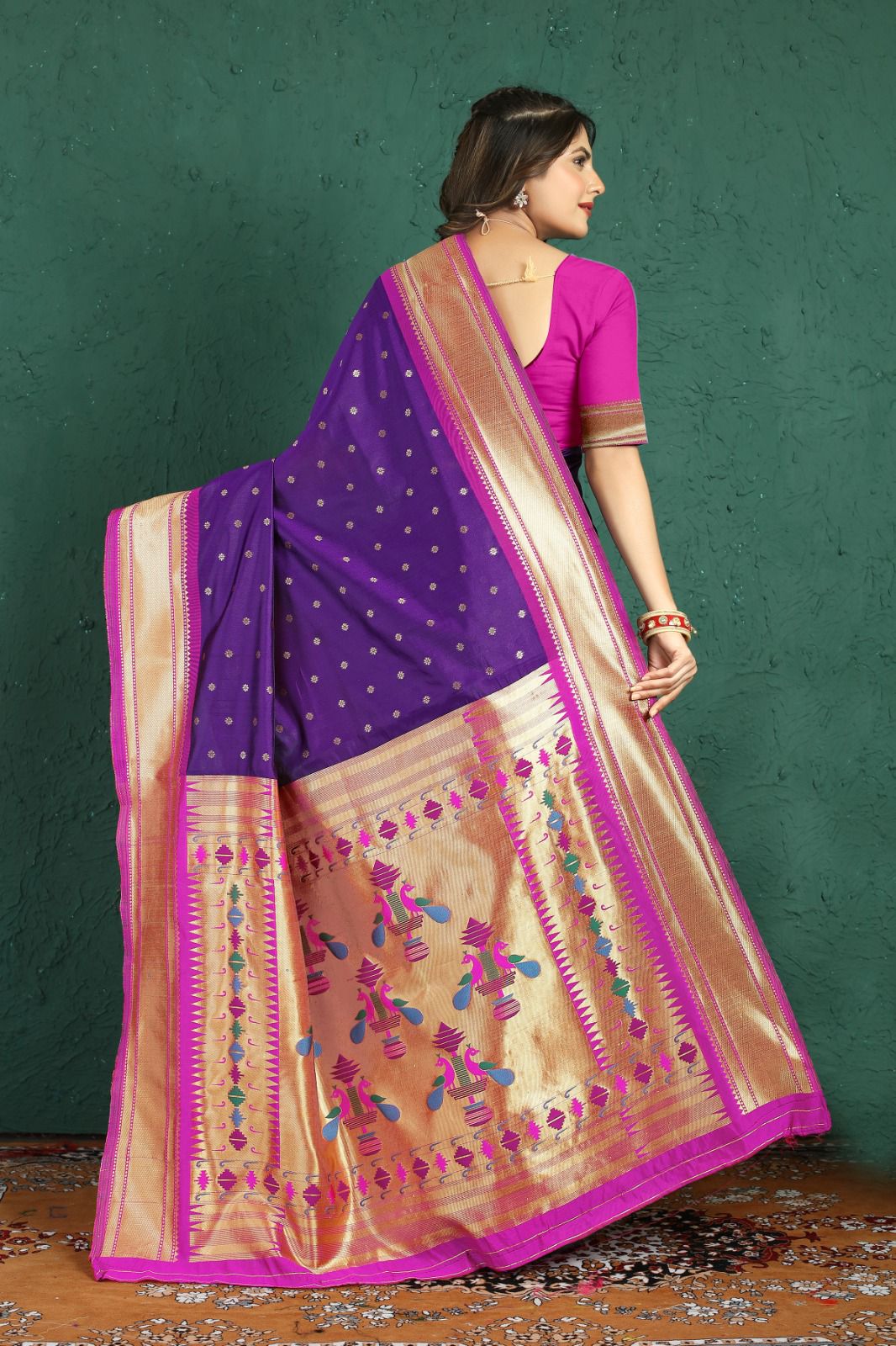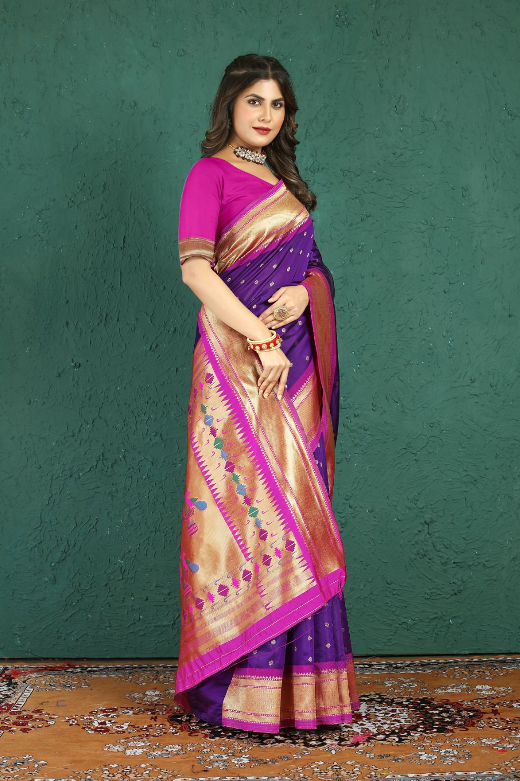 Charming Royal Purple Paithani Silk Saree With Beautiful Blouse Piece