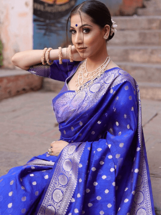 Classic Blue Soft Silk Saree With Seraglio Blouse Piece