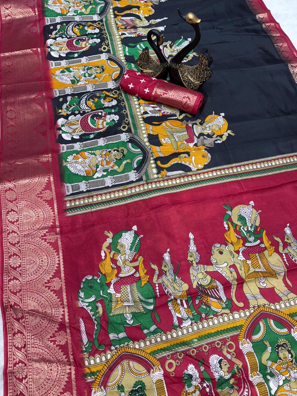 Classy Black Digital Printed Dola Silk Saree With Lovely Blouse Piece