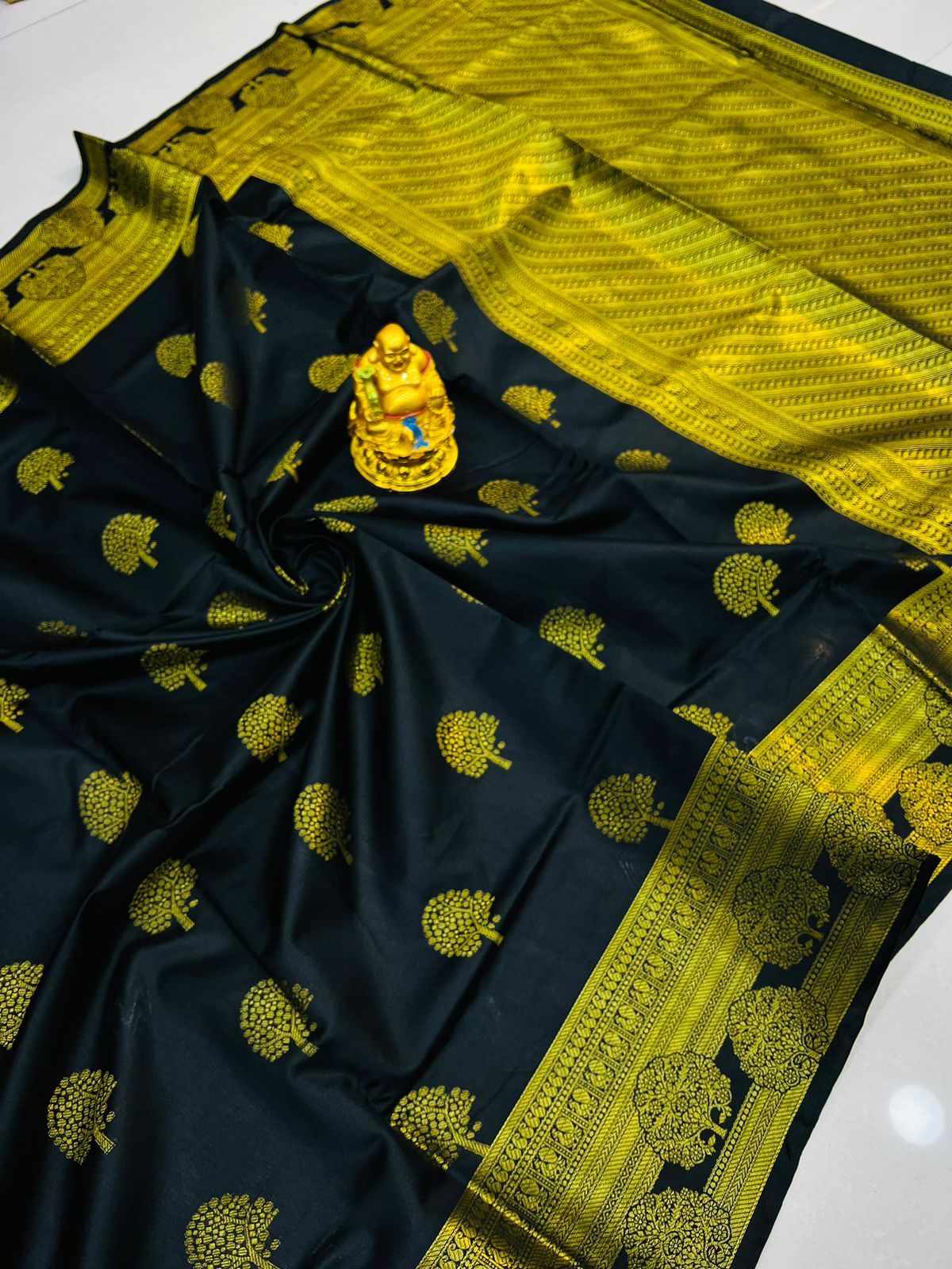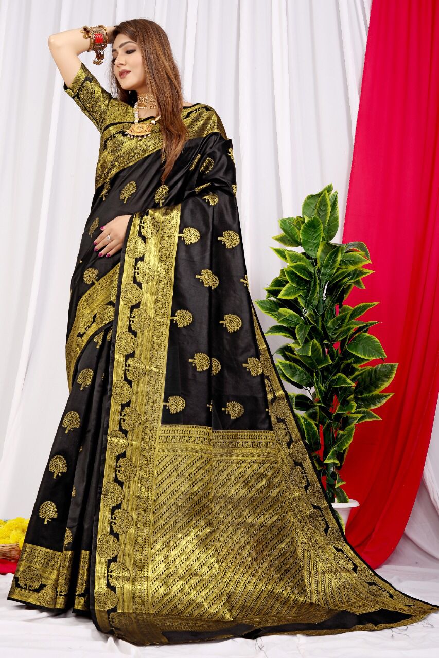 Classy Black Soft Banarasi Silk Saree With Supernal Blouse Piece