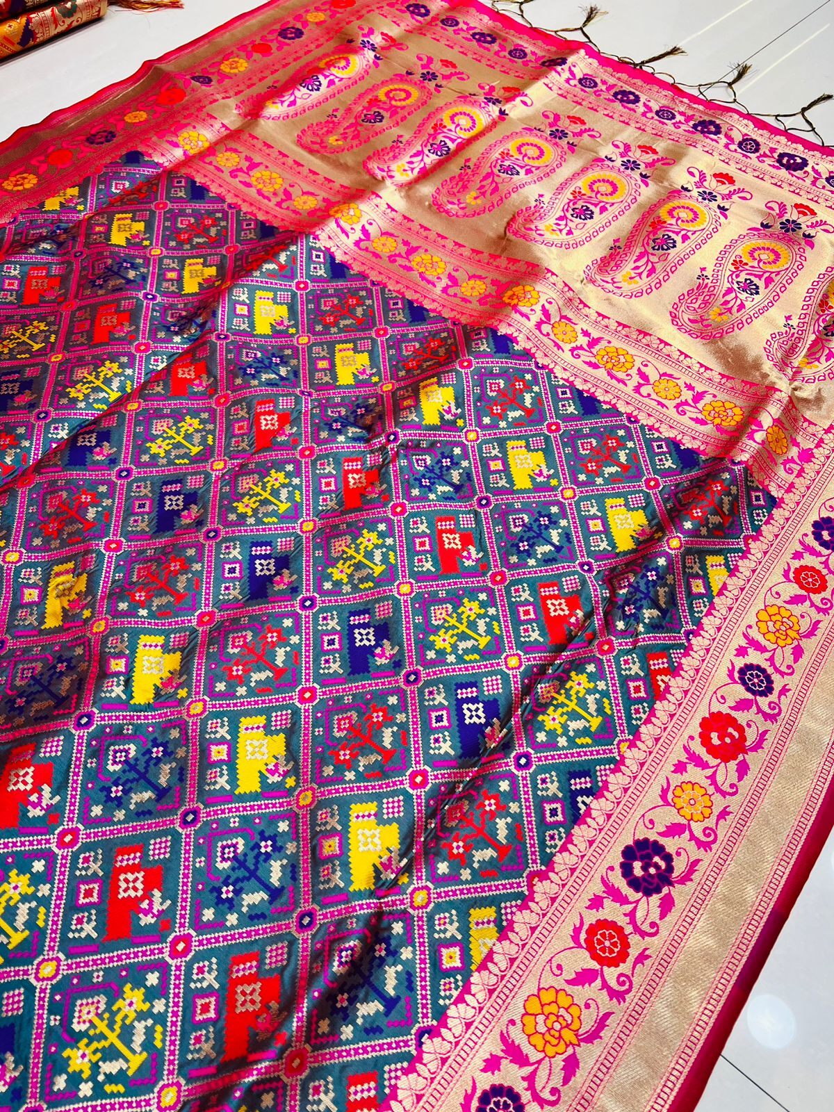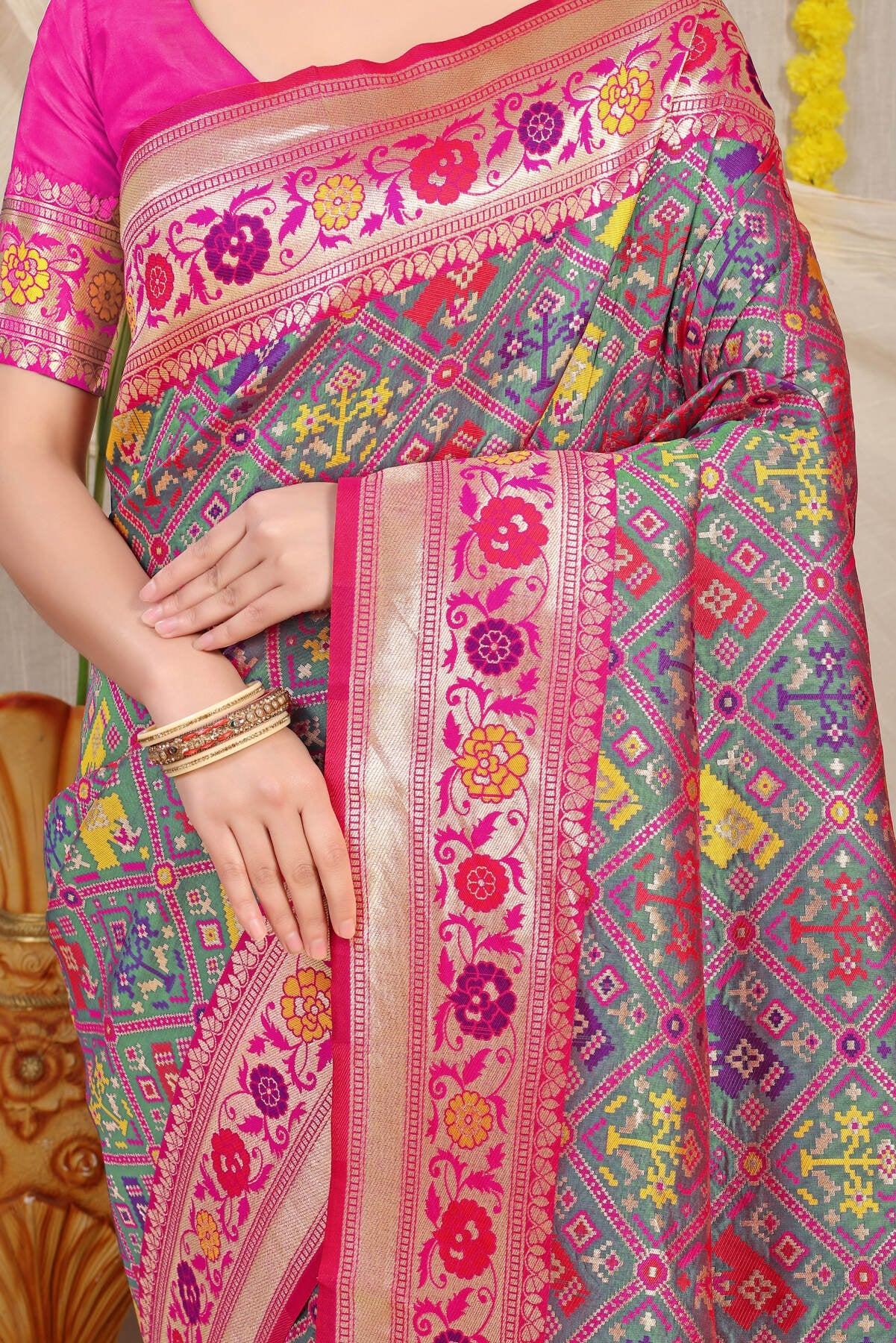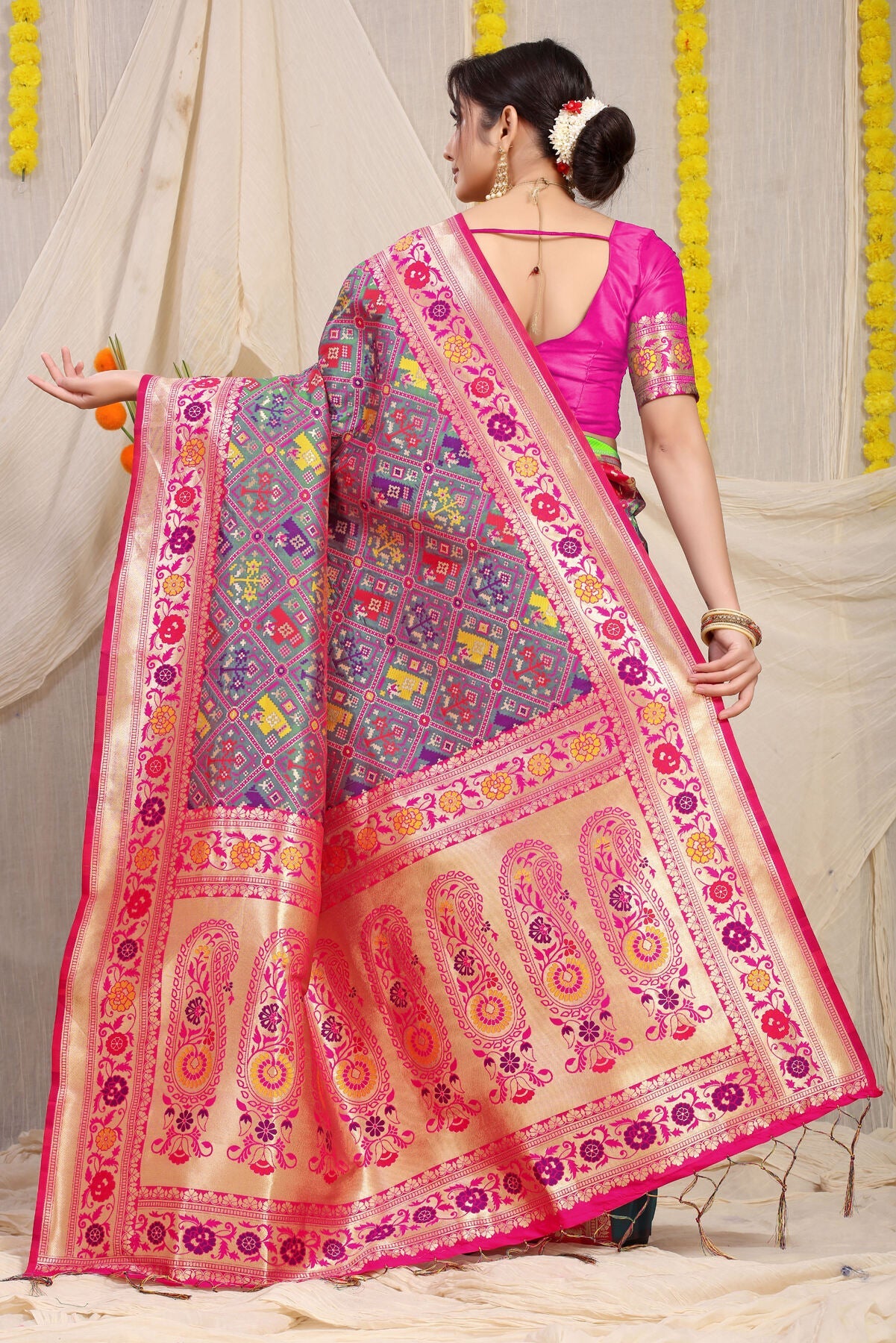 Confounding Grey Paithani Silk Saree With Blooming Blouse Piece