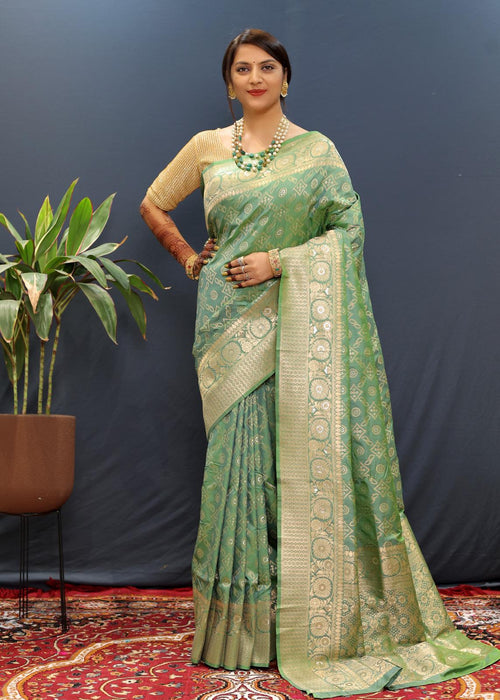 Confounding Sea Green Soft Banarasi Silk Saree With Smashing Blouse Piece