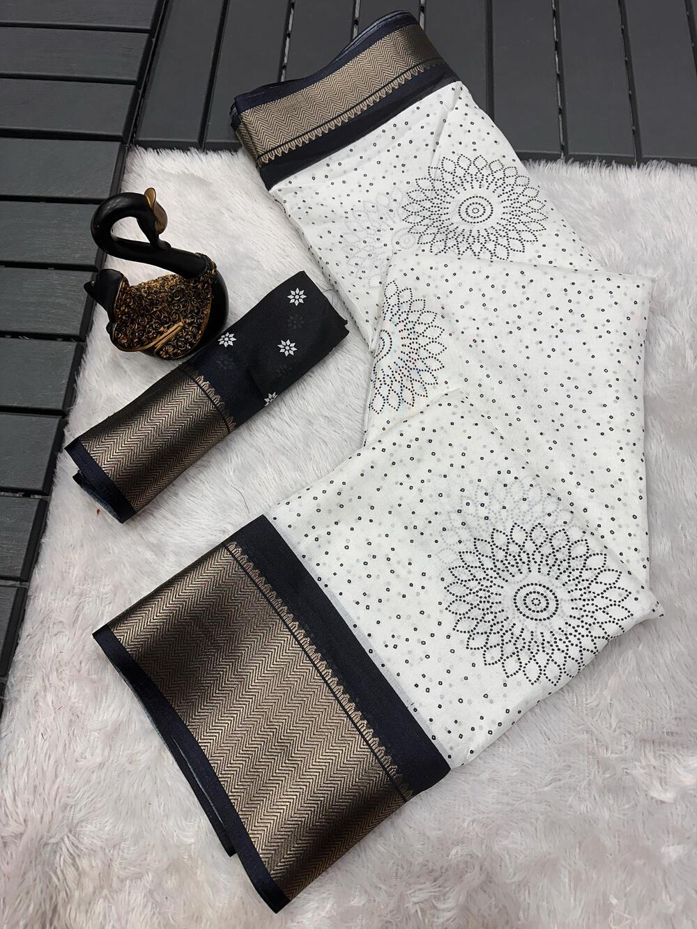 Dalliance Off White Digital Printed Dola Silk Saree With Desultory Blouse Piece