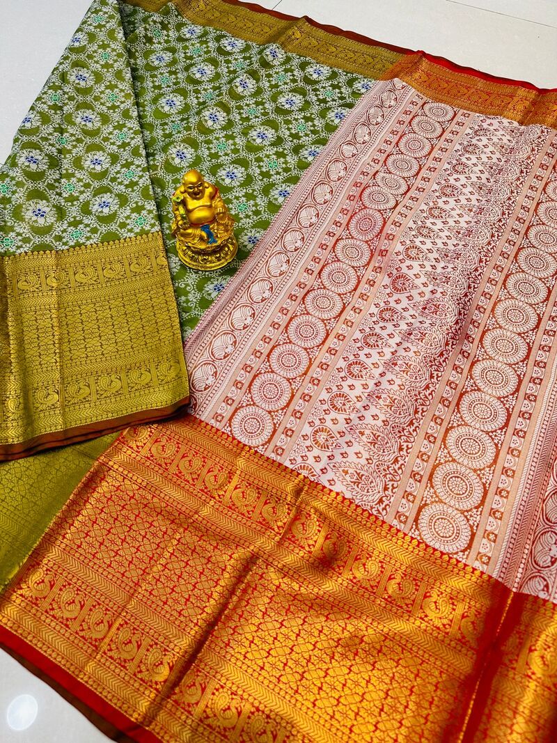 Demure Green Kanjivaram Silk and Angelic Blouse Piece