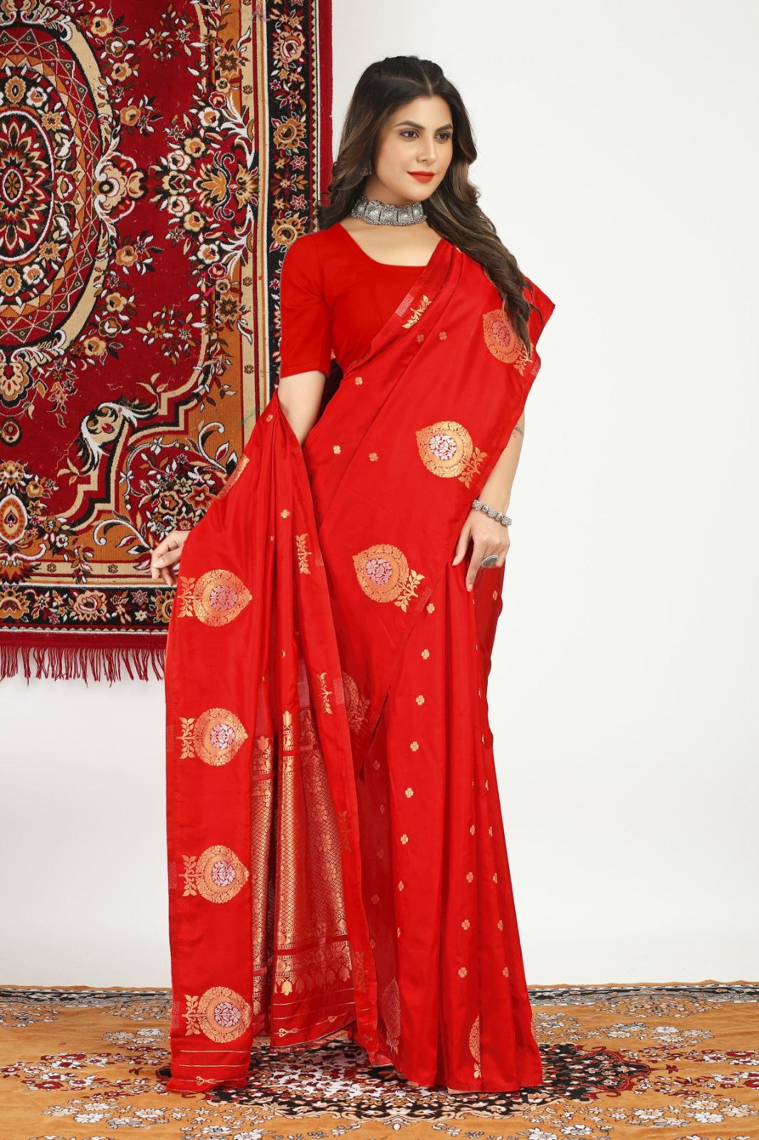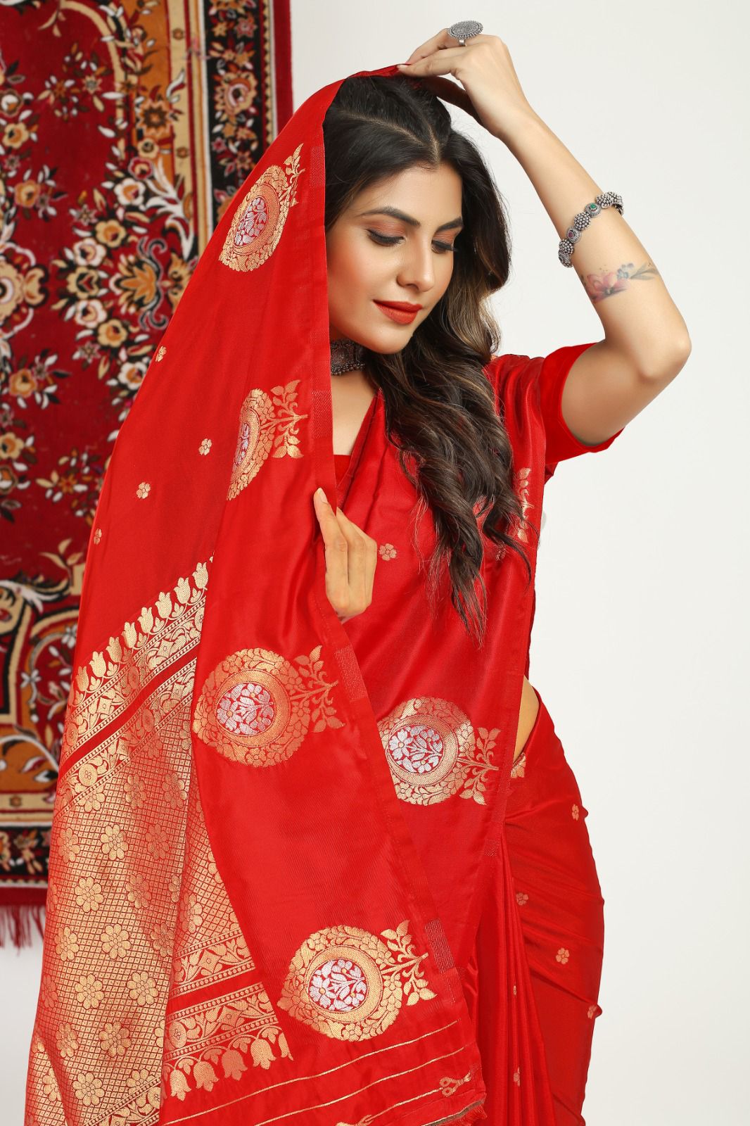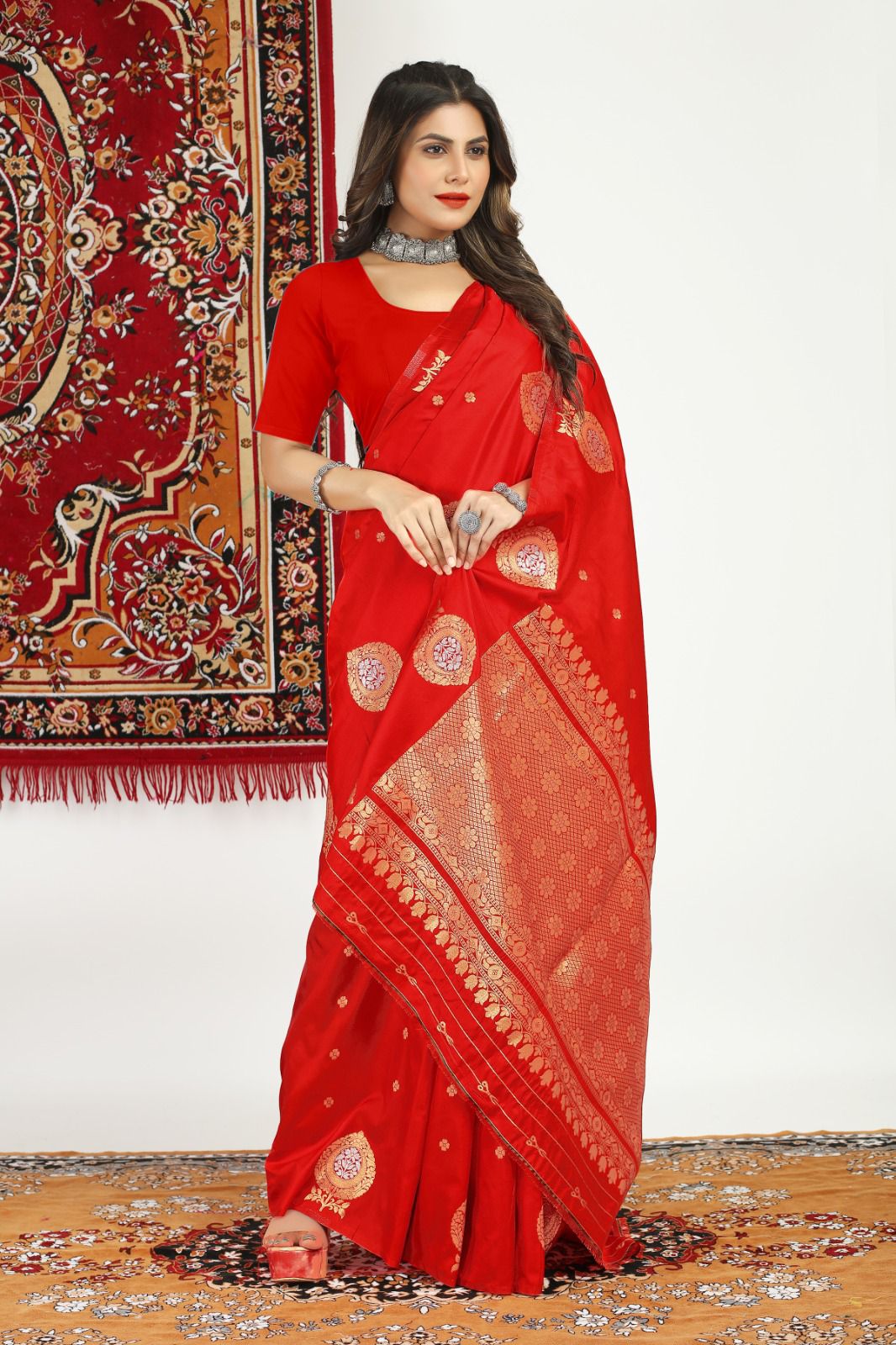 Desiring Red Banarasi Silk Saree With Appealing Blouse Piece