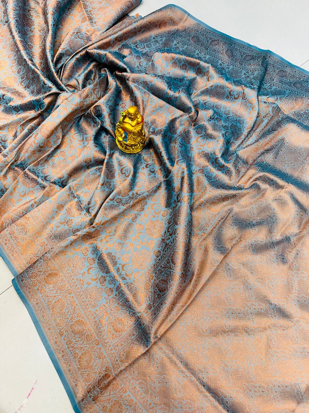Eloquence Sky Kanjivaram Silk Saree With Outstanding Blouse Piece