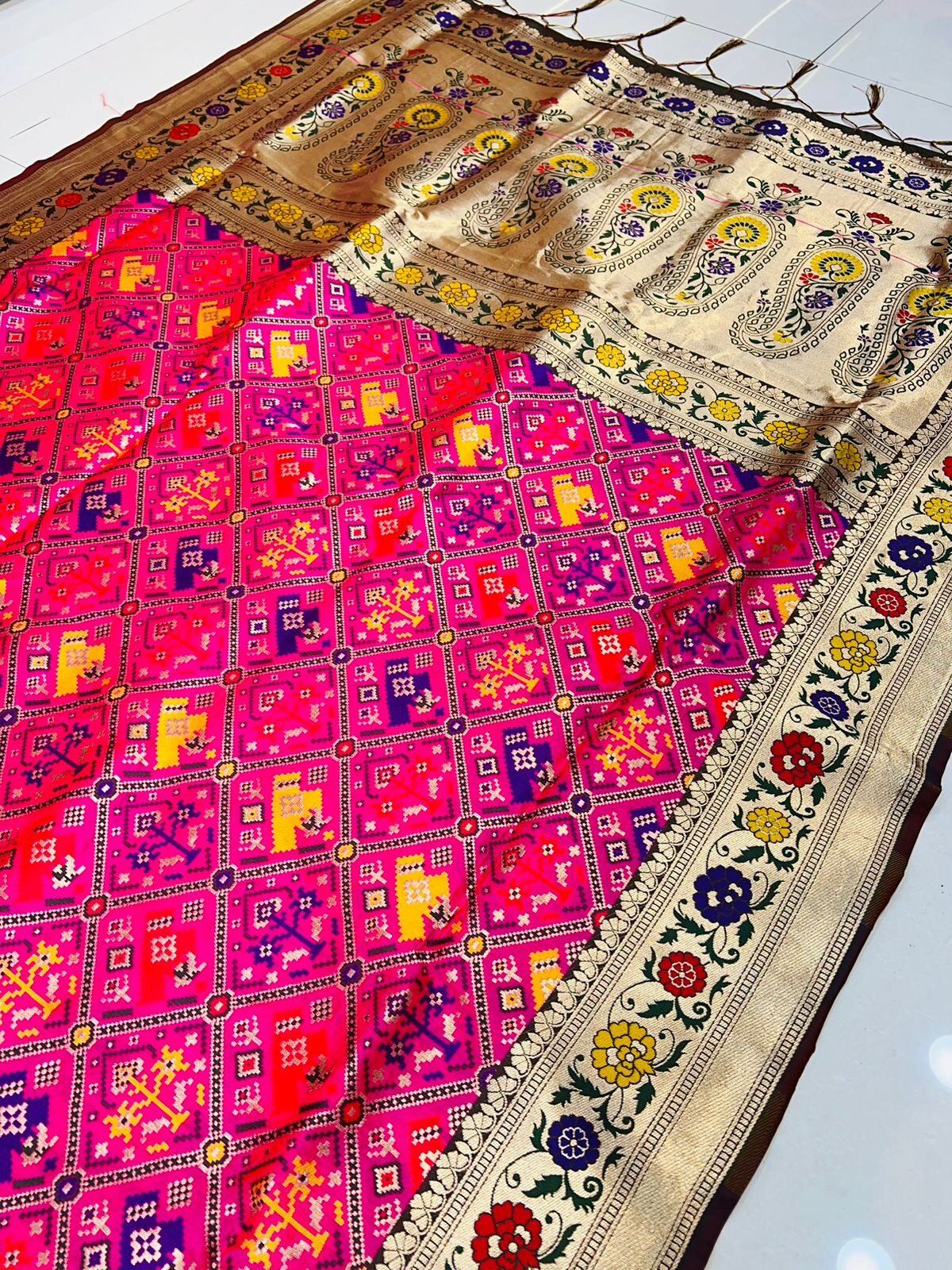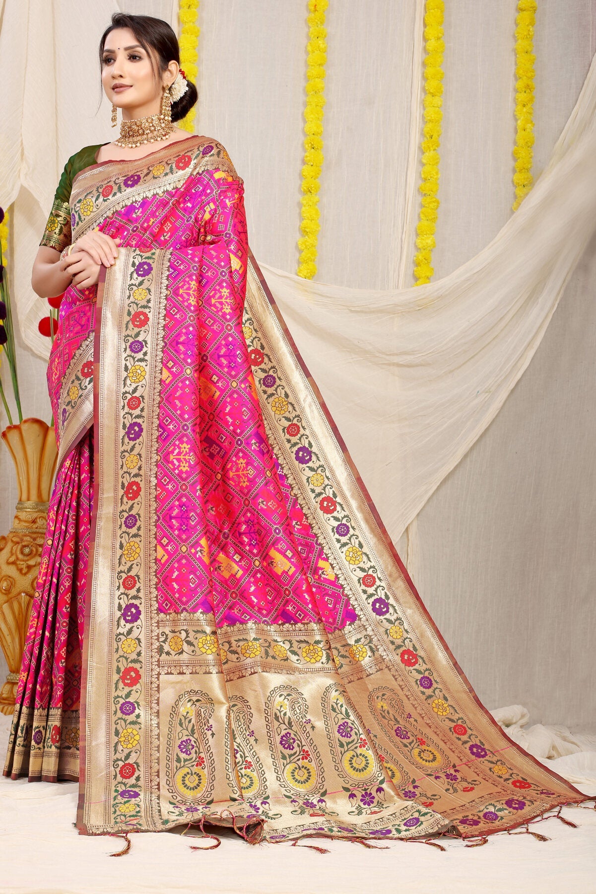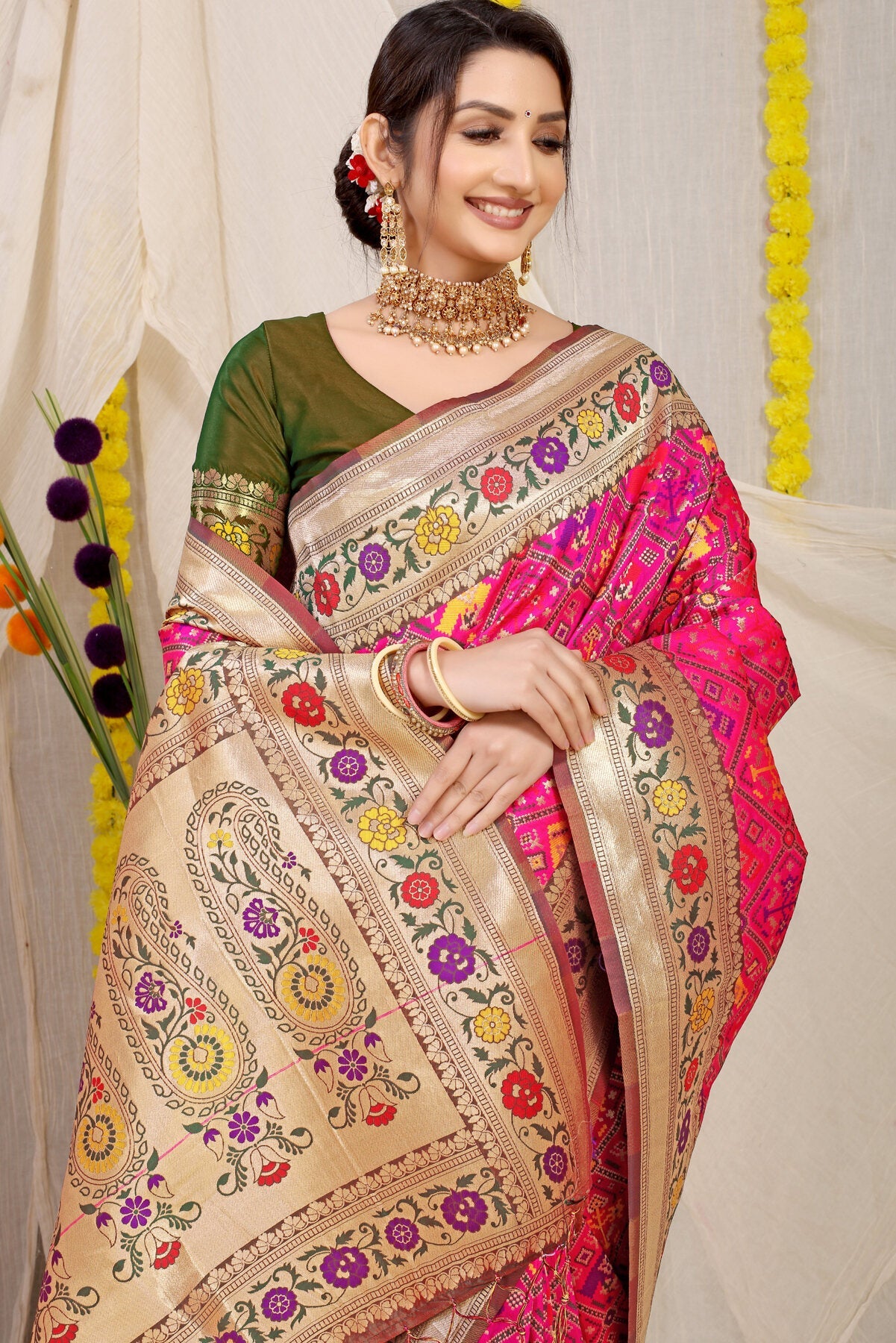 Enchanting Dark Pink Paithani Silk Saree With Flaunt Blouse Piece